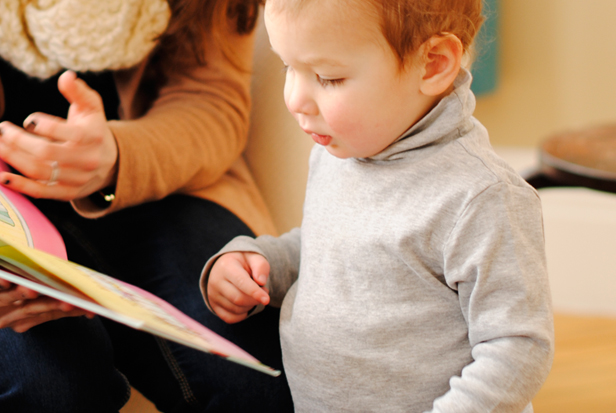 SILAS / 20 mo. / Another shot from Asher's party where a friend is taking a few moments out of all of the hectic fun to read Silas a Clifford book. He found a picture of a moon in it (one of his favorite things) and was thrilled.
